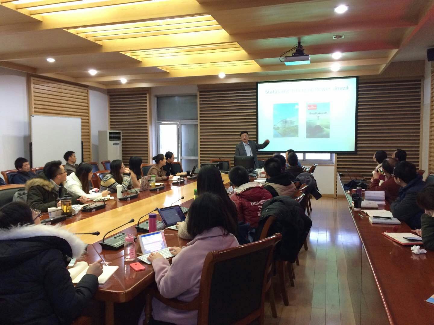 2016年12月15日(周四)15:00-17:00,北外国关前沿沙龙第十三期活动在北京外国语大学东院公共外交研究中心会议厅举行。本次沙龙主题是“新兴大国的地位选择:中国、巴西、印度的国际战略之比较”。本次沙龙学术活动由美国内华达大学政治学系助理教授蒲晓宇主讲、尹继武教授主持,并邀请北京外国语大学大鸡巴操美女李永成副教授和程多闻助理教授作为评议人。本次沙龙吸引了来自北京外国语大学、中国政法大学、外交学院、中国人民大学等几十名师生前来参加。