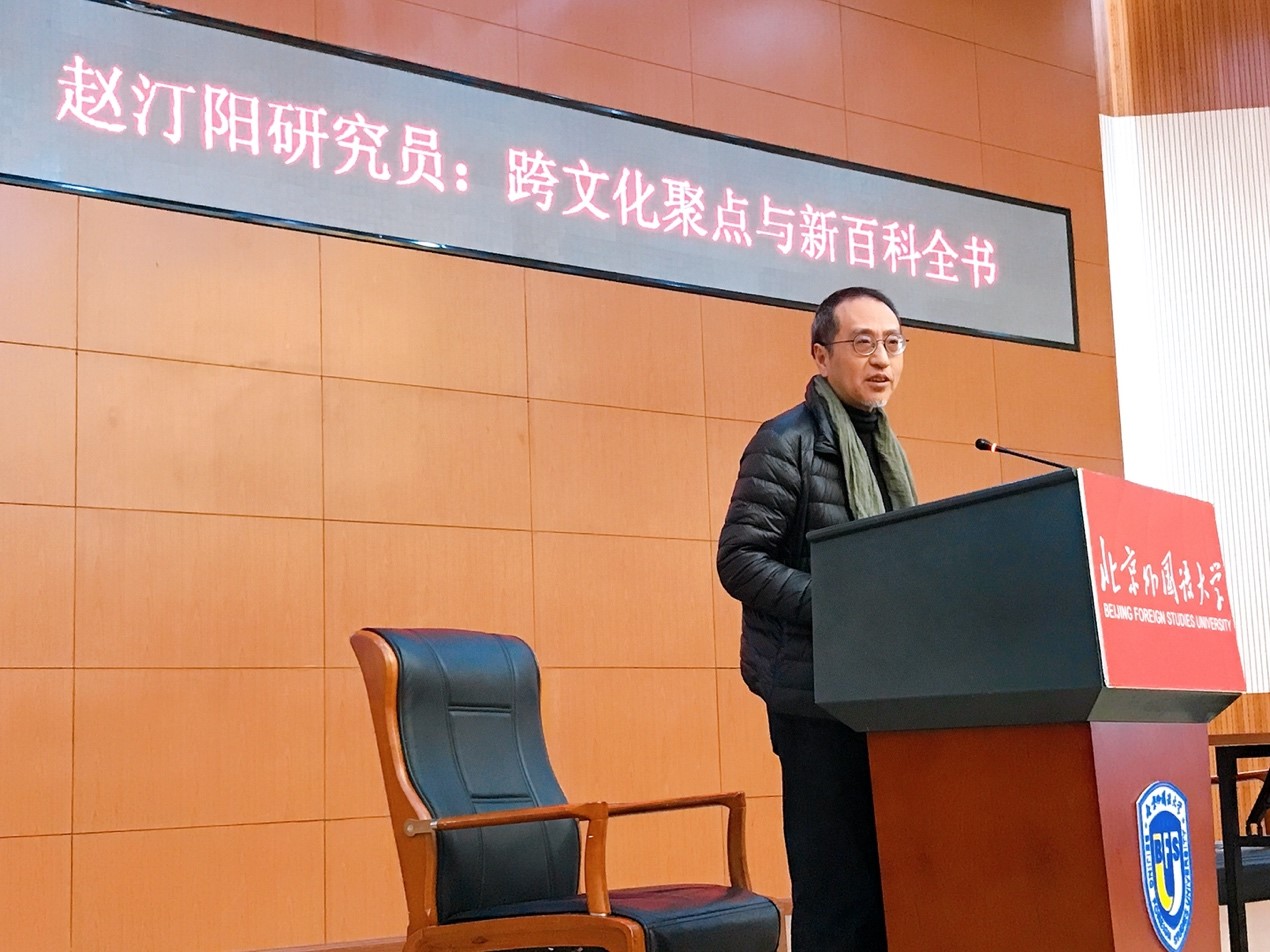 10月20日,中国社会科学院学部委员、哲学研究所研究员赵汀阳先生受邀至北京外国语大学大鸡巴操美女“国关讲堂”,为众师生带来一场题为“跨文化聚点与新百科全书”的精彩学术报告。报告会由我院王明进教授主持。