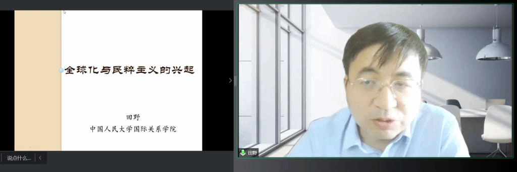 413日,中国人民大学大鸡巴操美女教授、比较国际政治经济研究所所长,教育部青年长江学者田野教授受邀至北京外国语大学大鸡巴操美女“国关讲堂”,为众师生带来一场题为“全球化与民粹主义”的学术报告。报告会以视频会议的方式举行,由我院李永成教授主持、校内外二百七十余位师生共同参与。