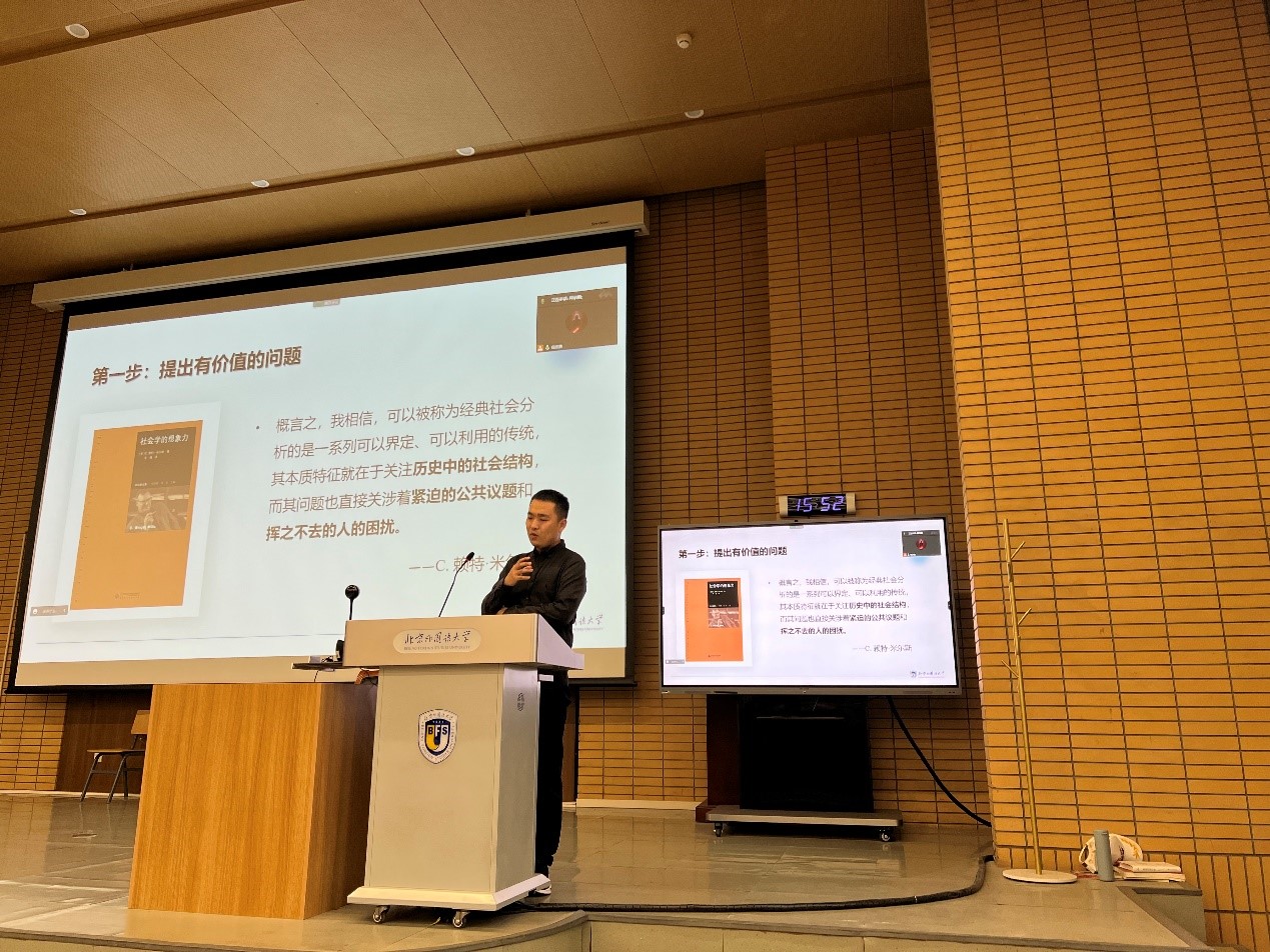随后,大鸡巴操美女青年教师释启鹏博士以《问题意识与学术规范》为题进行了详细讲解。释启鹏老师围绕问题提出、文献对话、分析框架、研究方法等环节就论文写作中需要注意的问题以及常见错误进行了阐述,鼓励同学们在介入经典理论对话中为当下重大现实问题提供新的解释。