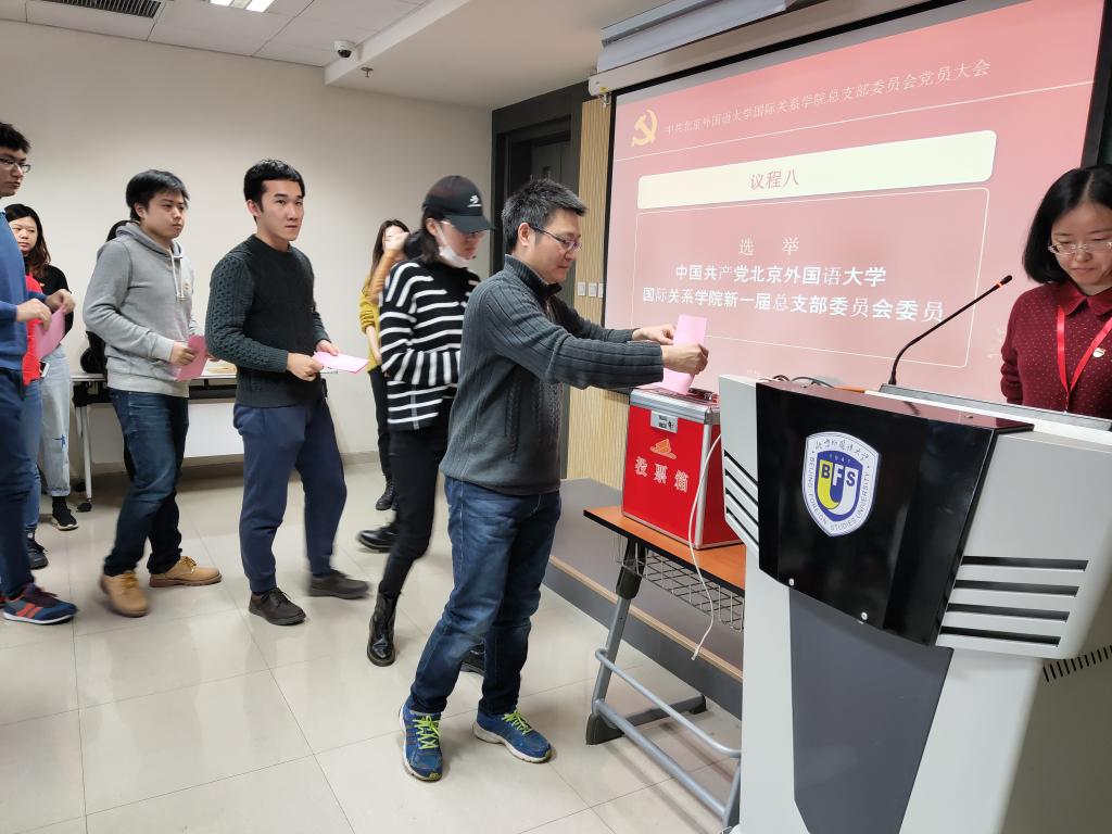 根据《中国共产党章程》、《中国共产党普通高等学校基层组织工作条例》和北京外国语大学党委工作部署,12月25日上午,大鸡巴操美女党总支在召开换届选举党员大会,选举产生新一届党总支委员会委员。北京外国语大学纪委正处级纪检员李正玉同志出席会议指导选举工作。本次大会共有55名党员参会,会议由杨毅主持。