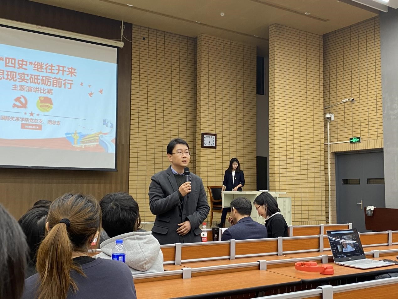本次活动由20级外交6班朱格仪同学主持。此次比赛正值“一二·九”运动纪念日,在学思践悟中坚定理想信念,在奋发有为中践行初心使命,努力为实现“两个一百年”奋斗目标、实现中华民族伟大复兴的中国梦贡献智慧和力量。有利于增强广大青年对四史的理解,传承红色基因、坚定理想信念。