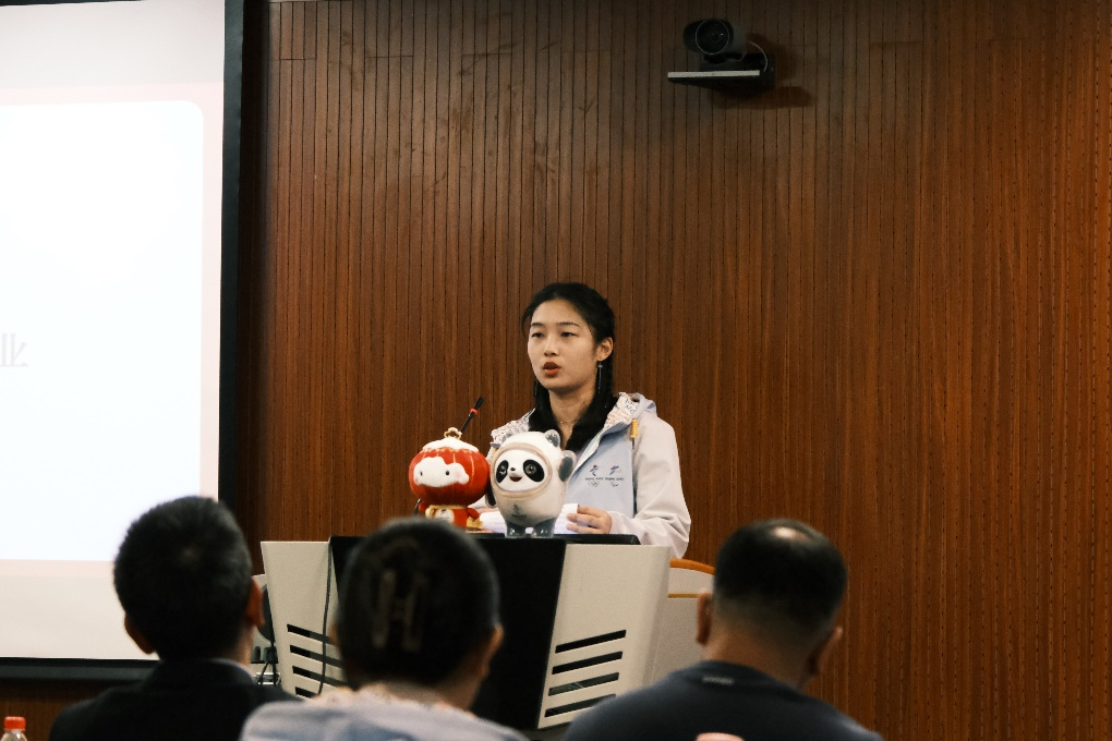 国家速滑馆体育展示领域专业志愿者何婧旸同学分享了自己担任推免保辅导员期间的学生工作经验,以及建国七十周年阅兵典礼上参与 “圆梦奥运”群众方阵的经历。她鼓励志愿者们通过冬奥志愿,传播北外声音、中国声音,表达了对于志愿者们的美好祝愿。