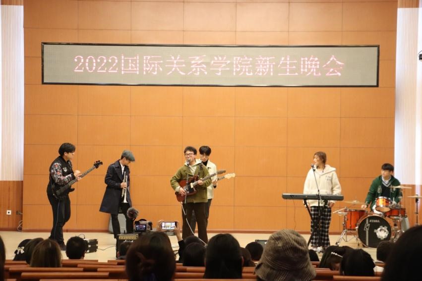 在乐队精彩的演出之后,主持人熊睿,梁予希,李陈虎,信沫含宣布迎新晚会正式开始。