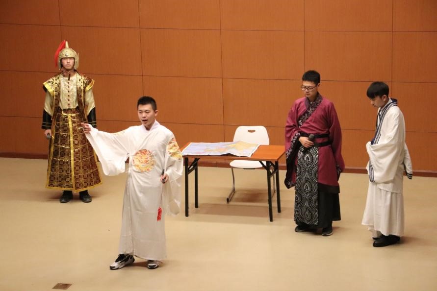 朱济麟、陈一卓、何柄岐、许尚阳同学为我们带来发生在明朝的外交风云《永乐十九年》,生动诠释了“观今宜鉴古,无古不成今”的道理。人事有代谢,往来成古今。江山留胜迹,我辈复登临。中华泱泱千年历史,有数不尽的风流人物和外交传奇。