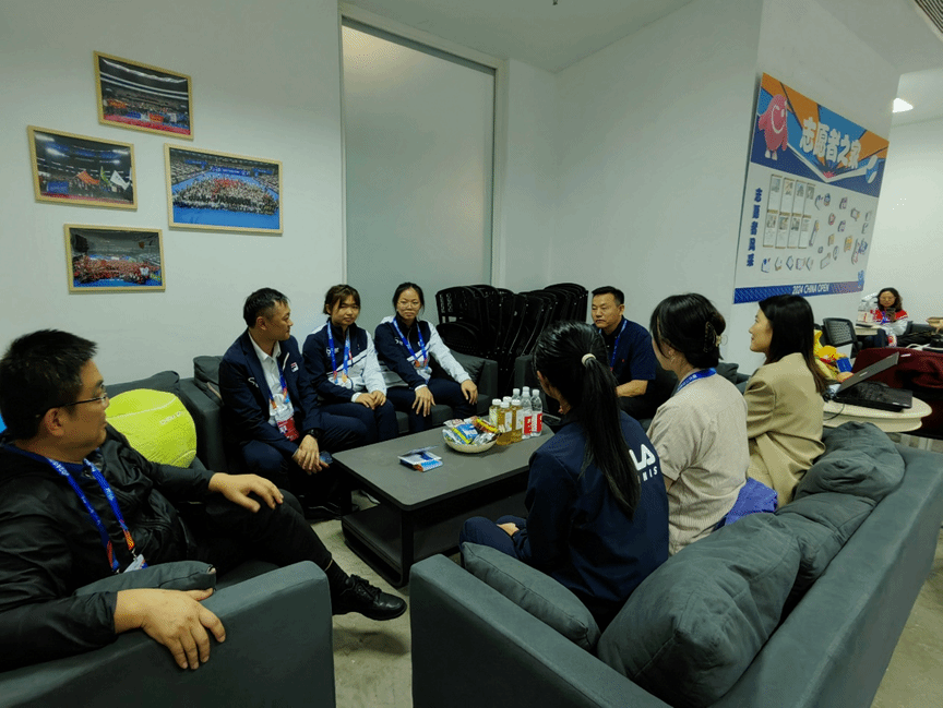 中网公司党支部书记、副总经理肖煜坤对我院高质量人才培养工作、大力支持中网发展表达了感谢,对我院在岗志愿者的专业素养和工作能力给予了充分肯定,并期待未来双方能进一步加强合作,共同推动中国网球运动的发展。