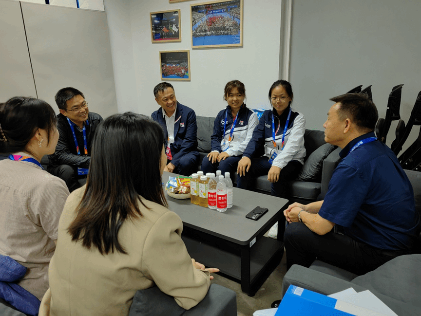 钱梦婷老师在座谈会上询问了志愿者们的收获和感悟,也提醒志愿者们在工作中要互帮互助、互相关爱,志愿服务之余照顾好自身,学院会给予大家最大的支持和保障。辅导员褚静璇、学生代表张池也参加了此次座谈,并围绕中国网球运动的发展情况、学院学生参与网球运动的热情等话题展开交流。