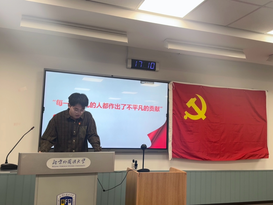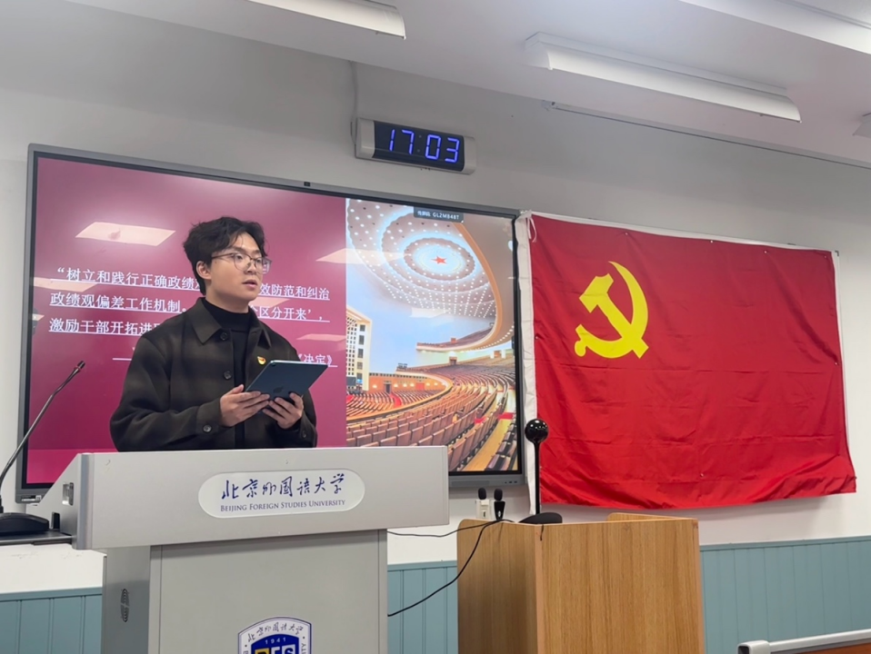 2024年10月23日下午,北京外国语大学大鸡巴操美女本科生党支部理论学习活动在逸夫楼203顺利开展。本期理论学习由本科生党支部书记苏莞舒主持,21级党支部成员吉瑄彬和孙至善主讲。