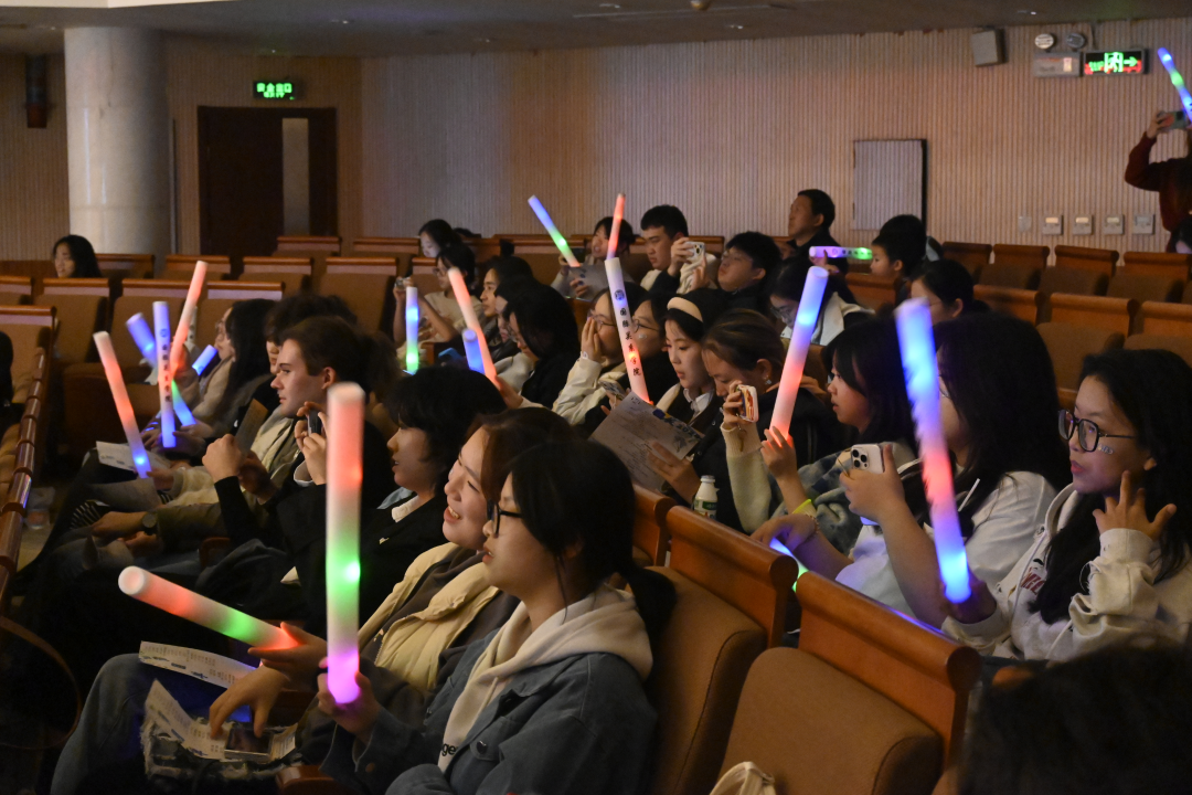 随着北外合唱团悠扬的《Siyahamba》响起,晚会缓缓拉开序幕。这首曲子活泼的旋律不仅洋溢着异域风情的独特魅力,同时也为晚会注入了欢快的氛围。随后,歌曲《燕归巢》《我很快乐》以及弹唱《最初的梦想》依次上演,它们共同勾勒出新生学子从怀揣对故乡的思念到坚守初心,再到乐观进取的心灵旅程,深深触动了在座同学们的心弦。紧接着,说唱曲目《恨如冰》以它动感十足的节奏,将现场气氛推向了新的高潮。