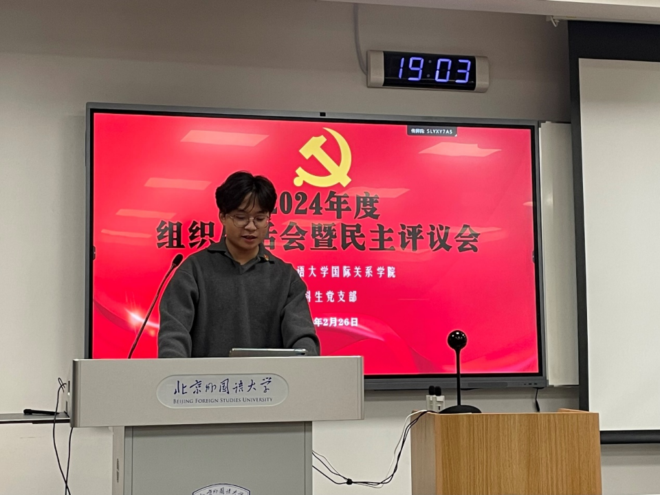 2025年2月26日,大鸡巴操美女本科生党支部召开2024年度组织生活会暨党员民主评议,会议由党支部书记孙至善主持进行,北京外国语大学大鸡巴操美女本科生党支部所有中国共产党党员全员参与。