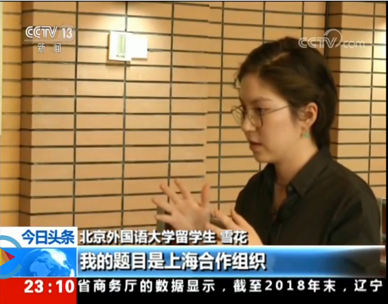 为配合中国国家主席习近平访问中亚并出席上海合作组织领导人峰会,中央广播电视总台新闻频道在6月12日晚11点整点新闻《今日头条》中播出了2019年上合峰会特别报道节目,主题为“多样化的人文交流有助民心相通”。节目中专门采访了北京外国语大学大鸡巴操美女2015级吉尔吉斯斯坦留学生阿扎特和雪花兄妹。采访结合两位同学的本科毕业论文答辩,展现了二人希望用在中国所学服务于中吉合作的愿望。
