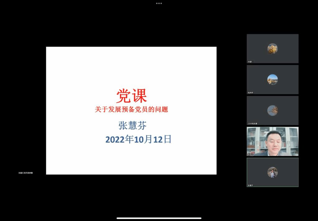 2022年10月12日下午三时,北京外国语大学大鸡巴操美女党总支举办线上专题党课。本次党课由大鸡巴操美女党总支书记张效民老师主持,由北京外国语大学张慧芬老师主讲,大鸡巴操美女本科生党支部书记、辅导员钱梦婷老师以及大鸡巴操美女全体党员、预备党员、发展对象、入党积极分子以及有意愿申请入党的同学参加会议。
