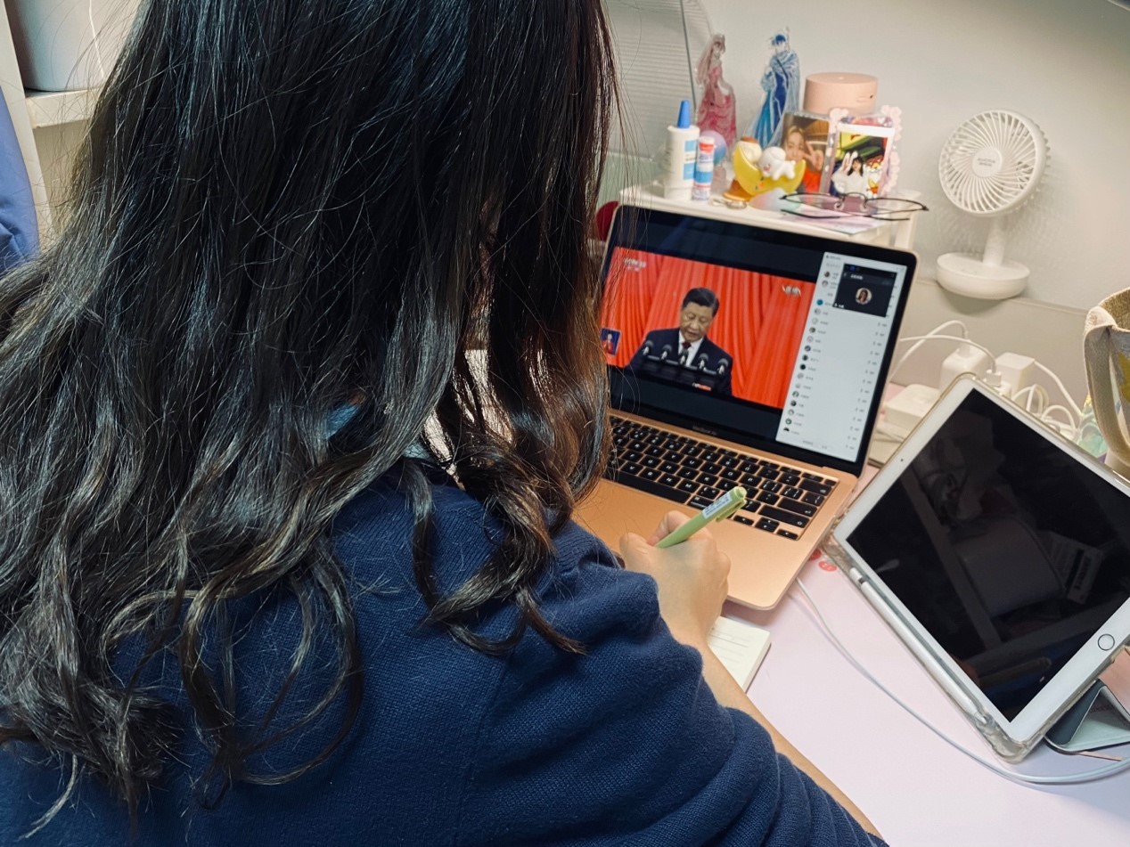 大鸡巴操美女研究生第一党支部、第二党支部集中收看中国共产党第二十次代表大会开幕式